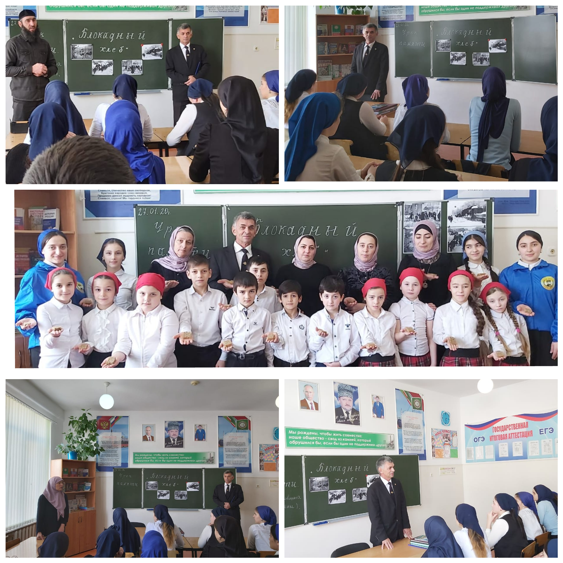 27.01.2020Учитель истории Чинтамиров С.Ч. провел Всероссийский Урок памяти "Блокадный хлеб", с учащимися 5-11 классов. Ученица 11 класса Умалатова А. прочитала стихотворение О.Берггольц "Блокадный хлеб". Ребята узнали, что блокада в Ленинграде длилась 872 дня. Ленинград с колоссальной скоростью терял своих жителей. Единственной надеждой в завтрашний день был паек(хлеб в 125 граммов). Для того, чтобы дети, воочию увидели эту суточную норму, ЕДЮО ПО "Юные Кадыровцы" провели акцию "Блокадный хлеб". Султан Чочаевич рассказал о составе блокадного хлеба и призвал бережно относится к хлебу. Ребята также узнали как их сверстники боролись с голодом, холодом и смертью. Как с первых дней войны старались помочь взрослым: вставали за станки вместо ушедших на фронт родителей. Также, ребята услышали историю дневника, школьницы Тани Савичевой. В дневнике было всего 9 строк, каждая из которых посвящена смерти одного из близких.