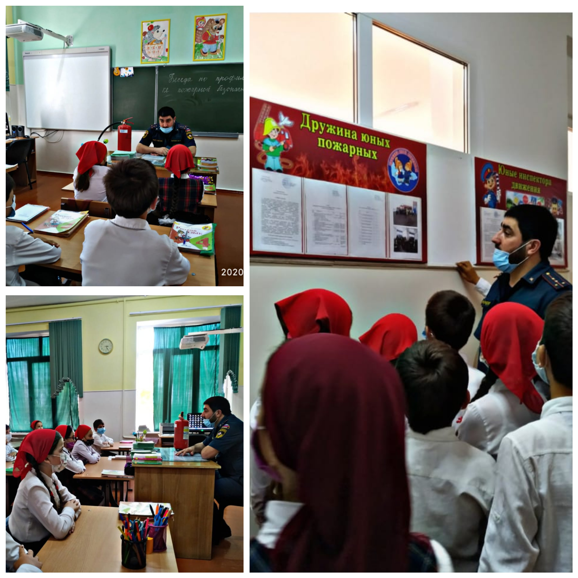 05.10.2020В рамках проведения Всероссийского открытого урока по основам безопасности жизнедеятельности, приуроченного ко Дню гражданской обороны Российской Федерации, а также 30-й годовщине МЧС России в МБОУ «СОШ с. Нагорное старшим инспектором по ОНД и ПР по Грозненскому муниципальному району капитаном вн. сл. Ангаев Ш.А. проведена беседа с учащимися по «Правилам пожарной безопасности».