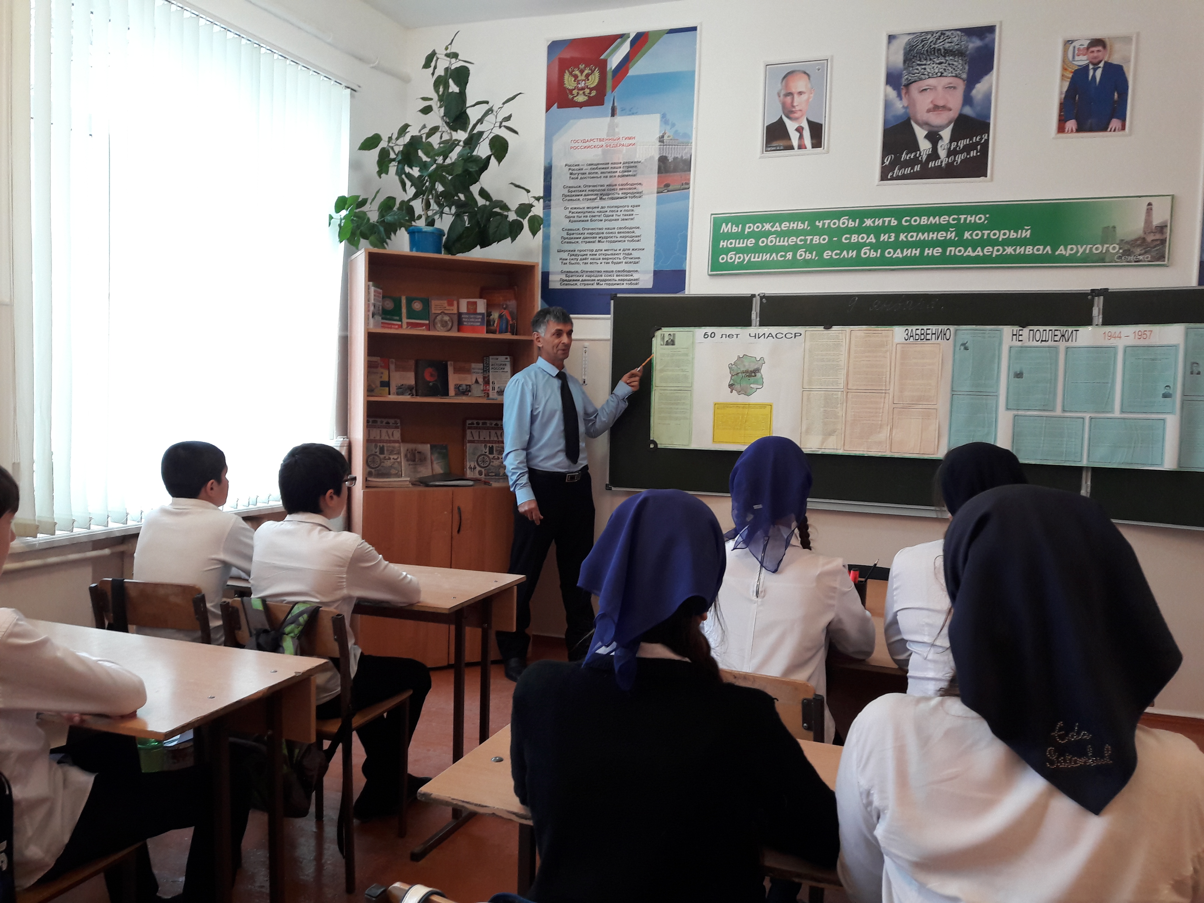 09.01.20179 января учитель истории, Чинтамиров С.Ч., провел урок истории «Важные страницы нашей истории», ко Дню восстановления ЧИАССР в составе РСФСР. Цель мероприятия – внести свой посильный вклад в воспитание у подрастающего поколения чувства патриотизма; формирование познавательного интереса к историческому прошлому своего народа и Чеченской Республики; расширить кругозор учащихся; привить любовь к Родине.