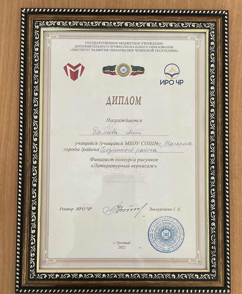 Ученица 8 класса МБОУ "СОШ с. Нагорное" Далиева Асет стала финалисткой конкурса рисунков "Литературный вернисаж"