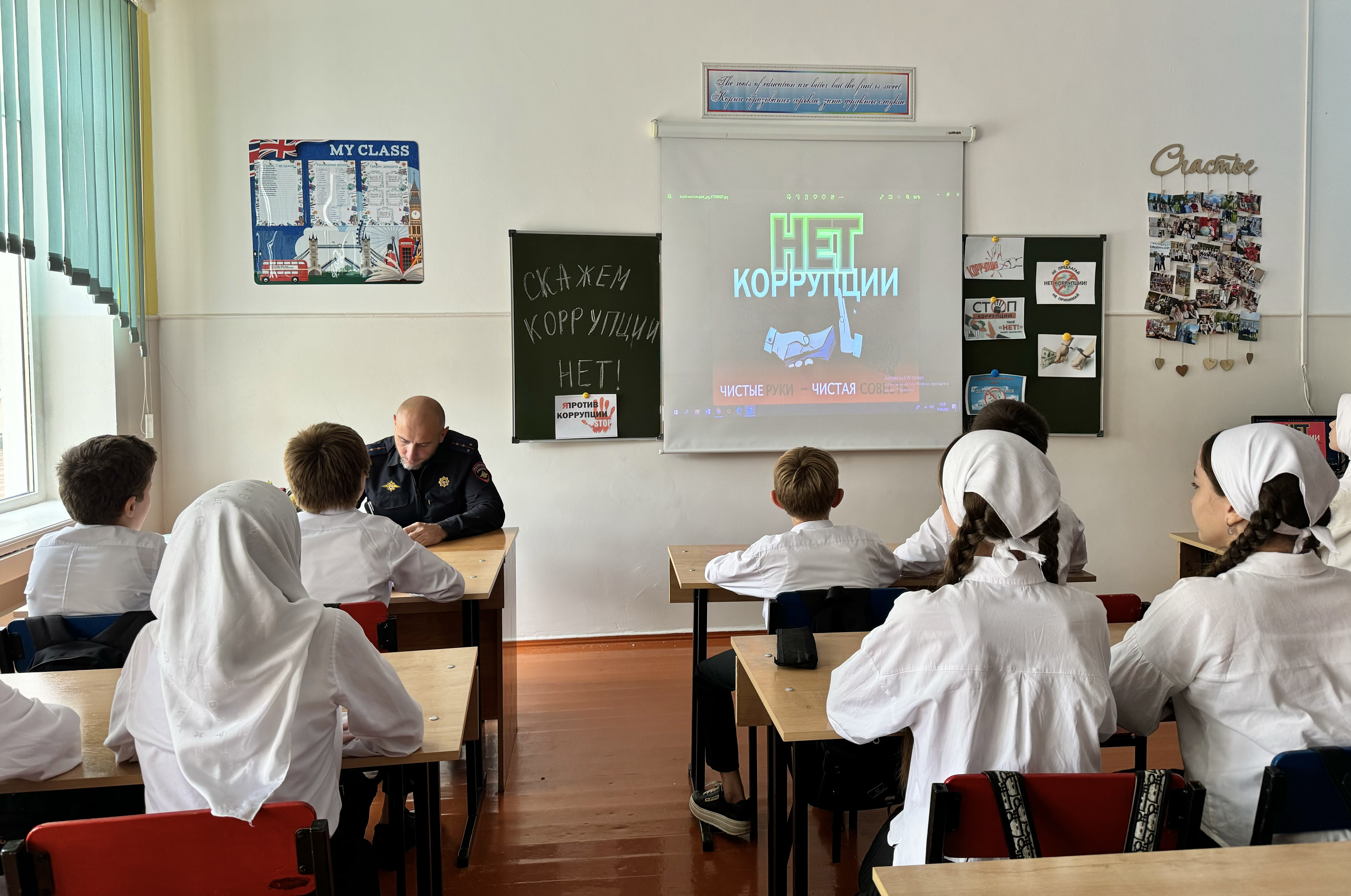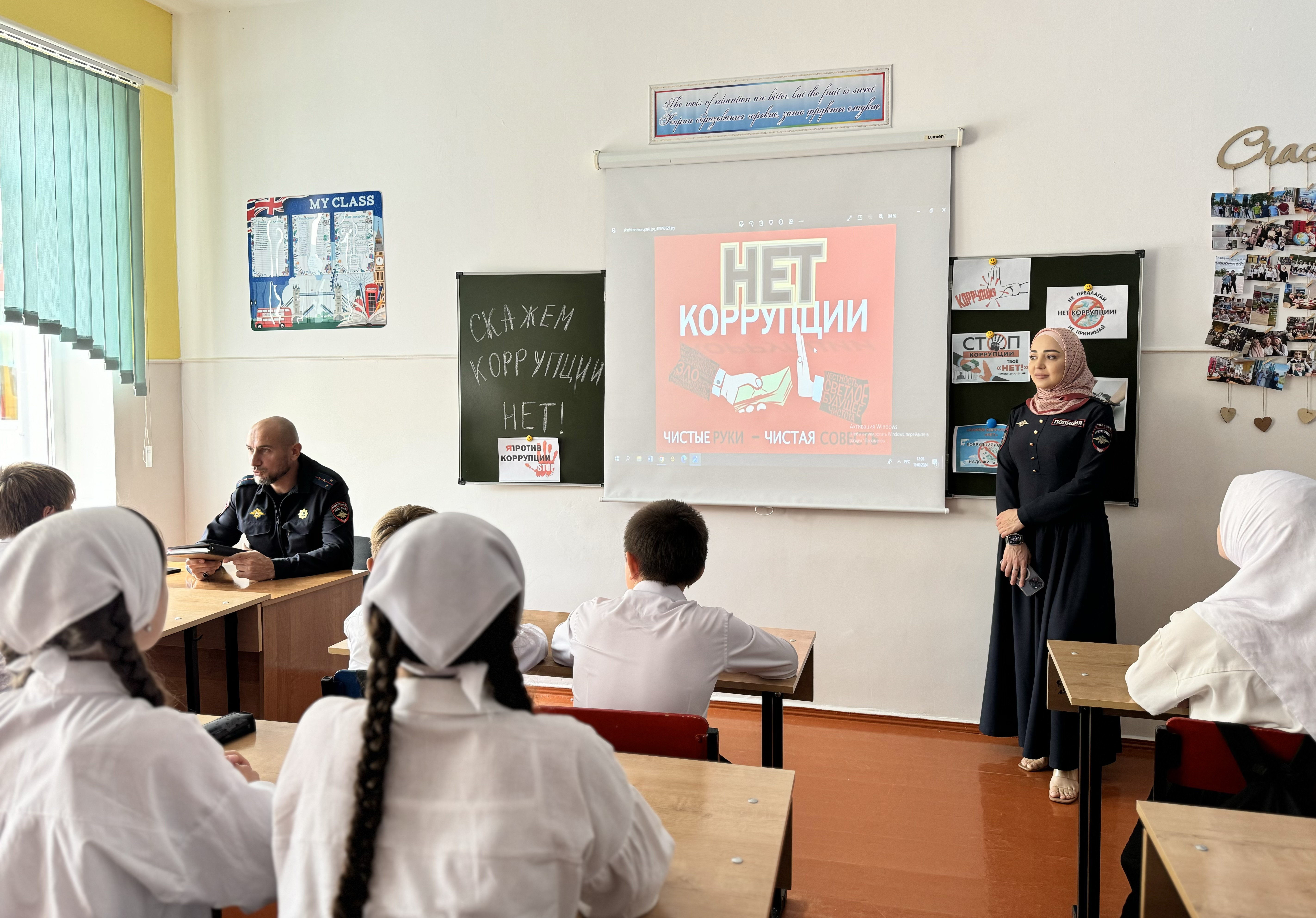 Профилактическая беседа с учащимися 7 «а» класса в присутствии ст. инспектора ОПДН ОМВД России по Грозненскому району капитана полиции Исмаилова М-Э.В. на тему: «Скажем коррупции «НЕТ»!