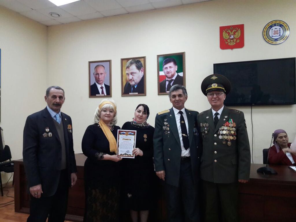 08.03.2018Директор МБОУ "СОШ с. Нагорное" Джамалдинова Зулпа Нуралиевна награждена грамотой за содействие и помощь ветеранскому движению в Чеченской Республике, активное участие в работе "Союза ветеранов Группы войск в Германии" и большой личный вклад в военно-патриотическое и духовно-нравственное воспитание молодого поколения Президентом "Союза ветеранов ГВГ" генерал-полковником А.В. Терентьевым.