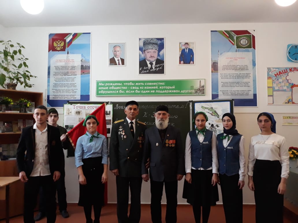 09.02.20199 февраля 2019 года В МБОУ « СОШ с.Нагорное прошло мероприятие, приуроченное к 30 – летию вывода войск из Афганистана. На данное мероприятие были приглашены ветеран ГСВГ – Сулибанов М.Ц., вдова воина – интернационалиста Салгириева А.А. – Салгириева П.С.