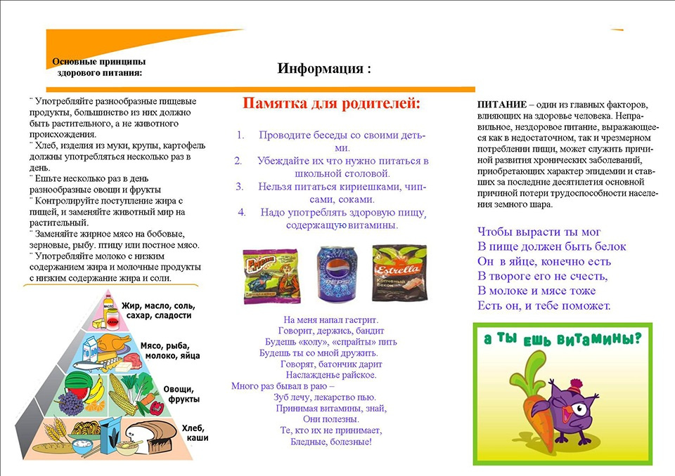 Информация для родителей Анкетирование по вопросам организации школьного питанияАкт по итогам проведения родительского контроля питания